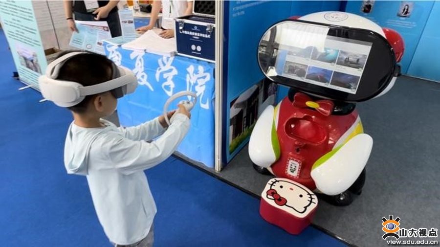 会展期间,作为受邀参展的八所高校之一,山东大学临床神经语言学研究中心展位重点对外国语学院及“临床语言学”学科建设、团队建设、人才培养、科研成果、社会服务等成果进行了展示,并带领参观者体验临床语言学研究的转化成果——基于汉语儿童社交沟通能力评估与干预的VR评估与康复训练仪。展位吸引了来自国内外数百位来自医院、高校、科研院所、康养机构的观众。与会观众对山东大学在新文科背景下创设的文医交叉的“临床语言学”特色学科表现出浓厚兴趣,并有企业、医院、机构等表达进一步的合作意向。