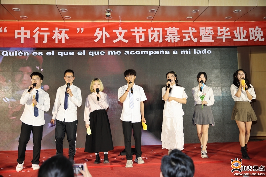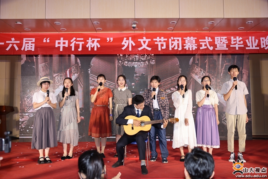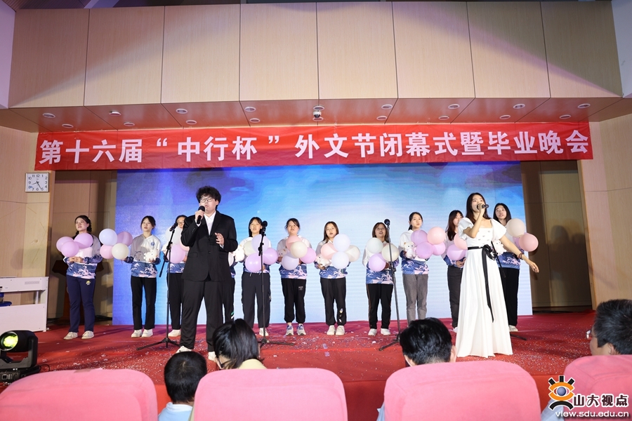 晚会最后,在场所有人共同合唱《我的山大我的家》,在整齐的歌声中,晚会落下了帷幕。外国语学院相关负责人、师生代表,山大附中教师代表参加晚会。