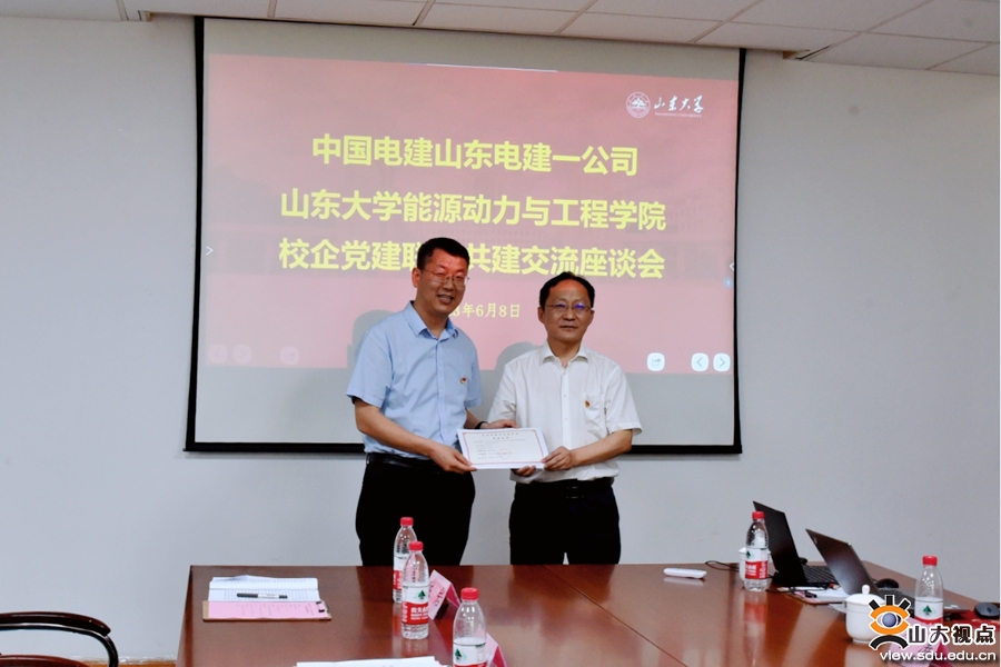 [本站讯]6月8日,能动学院与山东电建一公司在千佛山校区举行校企党建联学共建活动。此次活动以“党建联学共建,赋能绿色发展”为主题,山东电建一公司科技创新总监、科技工程部主任、企管科工联合党支部书记张俭平,能动学院党委书记辛公明出席活动。