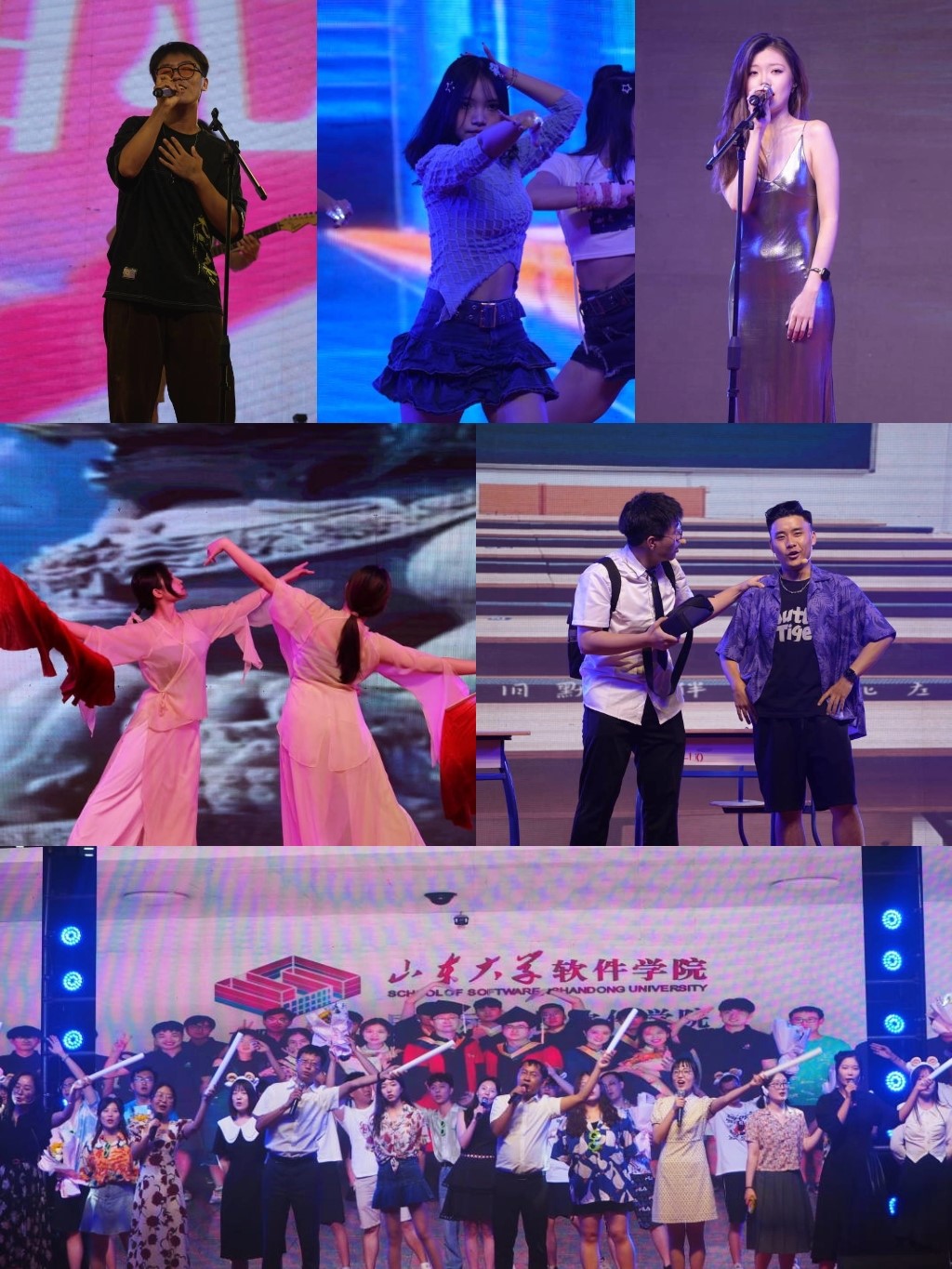 典礼结束,毕业晚会在欢快的歌曲中拉开帷幕,歌曲New Boy和《霓虹甜心》让现场气氛瞬间高涨,舞蹈Left Right将晚会推向了高潮。《繁星璀璨的天空》《有我》等精彩节目轮番上演,展现了软件学院学子的青春风采和艺术才华。从Wwhat Is Love到《你曾是少年》,从《男孩别哭》到Uptown Funk,毕业生们用歌声表达了对母校的感恩和对未来的期许。小品《一场考试》温情和激情兼具,用幽默风趣的方式回顾了大学生活中的点点滴滴,展现了软件学院毕业生们的风采和担当。最后,软件学院全体辅导员献唱《凤凰花开的路口》,为2023届毕业生送上诚挚的祝福,晚会在师生合唱中落下了帷幕。