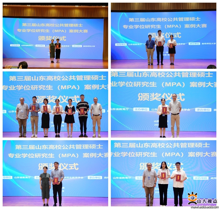 [本站讯]7月15日,由山东省教育厅指导,山东学位与研究生教育学会主办,曲阜师范大学承办的第三届山东高校公共管理硕士专业学位研究生(MPA)案例大赛在山东日照举行。山东大学代表队获得特等奖1项、一等奖2项、三等奖5项。