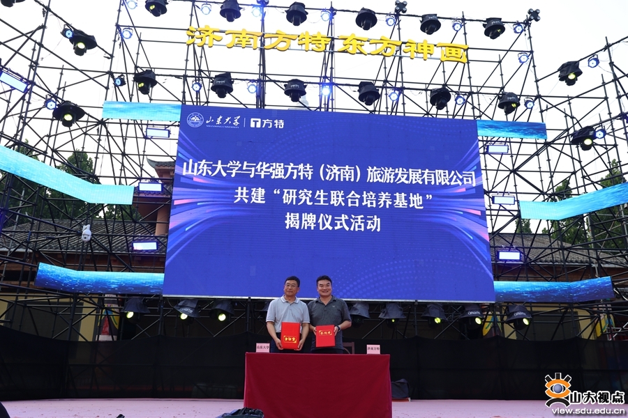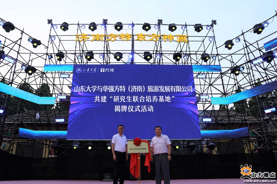 管理学院与华强方特(济南)旅游发展有限公司举行了研究生联合培养基地揭牌仪式。