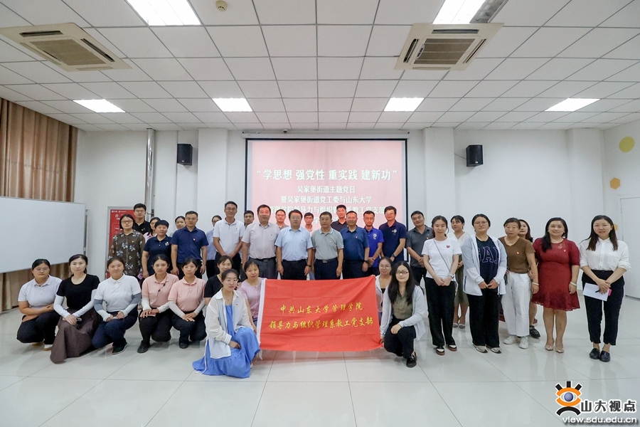 [本站讯]为加快推进新时代研究生教育高质量发展,全面推动研究生培养模式改革与创新,以产教融合和科教融合为途径,促进教育链、人才链、产业链、创新链有机衔接,为经济社会转型升级和创新发展提供强有力的人才和智力支撑,7月20日,管理学院与华强方特(济南)旅游发展有限公司开展“双融共促”党建共建活动。山东大学管理学院党委书记孟庆春、校党委研究生工作部专业学位教育办公室主任郑彬,吴家堡街道党工委书记范华锋、党工委副书记曹红军,华强方特(济南)旅游发展有限公司总经理国健、副总经理兼营销总监周斌出席活动。