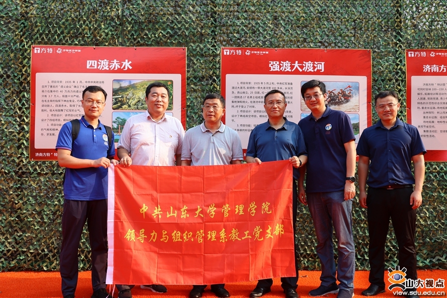 活动中,管理学院领导力与组织管理系教工党支部与吴家堡街道党工委开展了联合共建活动。在济南方特“特训营”素质拓展基地,党员同志们体验了“四渡赤水”“强渡大渡河”“巧渡金沙江”“爬雪山”“过草地”等红色主题拓展项目。