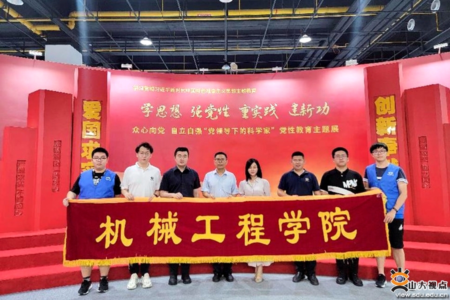 做实科普宣讲,服务社会大众。科普讲解志愿服务是工科学生发挥专业特长、服务社会大众的重要载体平台,山东大学“机”鼓传音团队充分发挥山东省科技馆作为机械工程学院“学生志愿服务基地”的优势平台作用,先后组织27名志愿者循环式前往山东省科技馆进行了志愿服务,既提升了山东省科技馆的服务水平,也为机械工程学院建设示范性志愿服务基地,为山大学子增长才干、服务社会创造了良好平台。实践团队骨干成员还在机械工程学院党委副书记刘玥带领下参观了“众心向党、自立自强,‘党领导下的科学家’党性教育主题展”,进一步提升了党团建设工作联学共建水平。