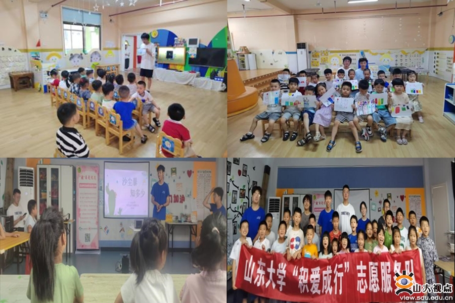 加强“双碳”宣讲,树立环保意识。为宣传“双碳”战略,引起儿童对全球气候变暖以及“双碳”目标的关注,学院组织社会实践团队前往福建福安睿博幼儿园,开展“双碳进校园”主题暑期实践活动,通过课堂小互动让专业相关知识与社会实践碰撞出火花,也让“双碳”理念走入校园,在孩子们的心中播下一颗绿色的种子。同时为提高课后服务质量,丰富儿童课余生活,激发他们对科学知识的兴趣和好奇心,学院组建“积爱成行”志愿服务队前往济南市愧荫区积成社区社会服务中心开展志愿服务活动,在寓教于乐中帮助孩子们正确认识沙尘暴,提高他们的环保意识。