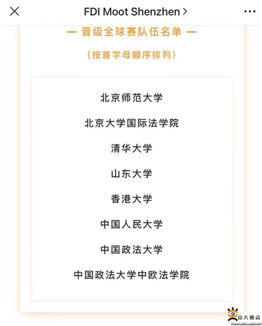 [本站讯]8月20日,2023年模拟国际投资仲裁深圳杯(FDI Moot)在深圳国际仲裁院落下帷幕,山东大学代表队取得全国八强的优异成绩,并成功晋级即将在印度勒克瑙举行的FDI Moot 2023全球赛。