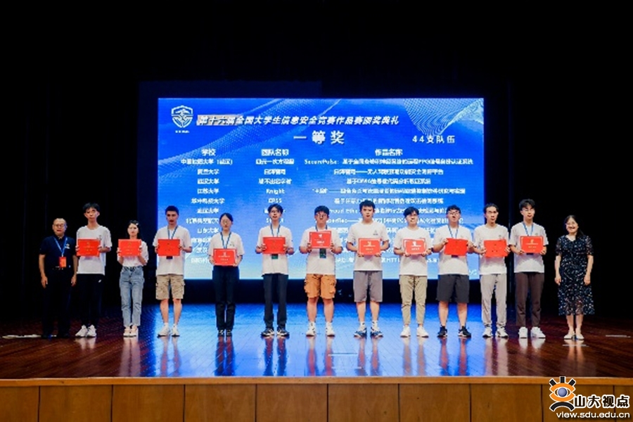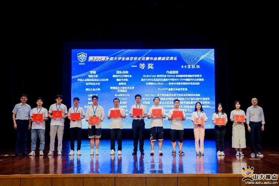 [本站讯]8月20日,2023年第十六届全国大学生信息安全竞赛作品赛决赛在杭州落幕。山东大学网络空间安全学院共有8支队伍参加决赛,荣获全国一等奖2项,全国二等奖1项,全国三等奖2项,魏普文教授和庄金成教授获优秀指导教师奖。