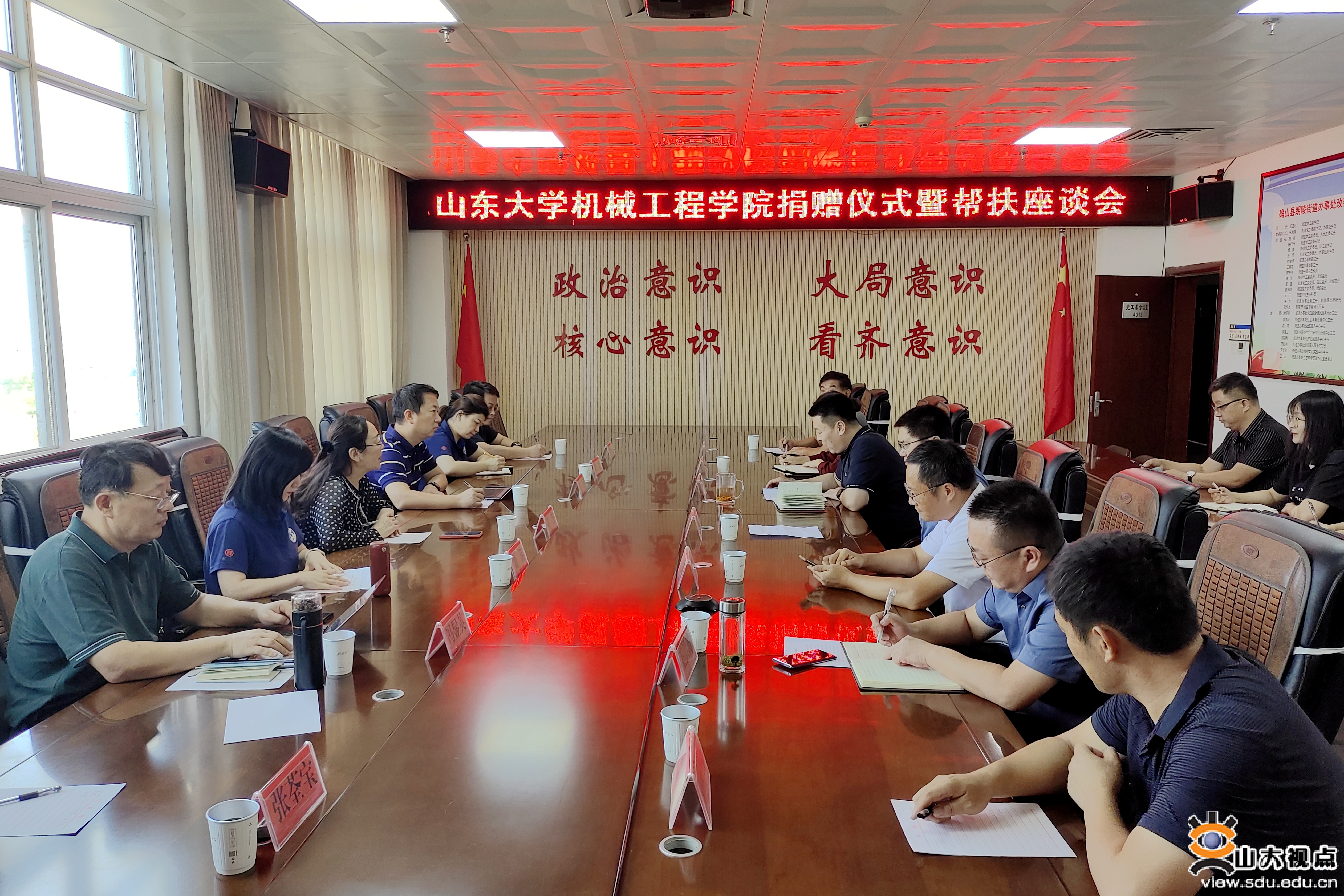 学院与朗陵街道举行捐赠仪式暨帮扶座谈会。会上,刘杰代表学院向街道捐赠2万元,用于支持基层党建和乡村振兴事业。祝道远介绍了朗陵街道近年来脱贫攻坚、推进乡村振兴取得的成绩和发展中存在的短板。万熠介绍了学院悠久的办学历史和近年来在立德树人、学科建设、科研创新取得的成果,深入分析了双方在推动乡村振兴工作中的比较优势,对未来双方进一步深化合作提出了具体要求。学院党委副书记刘玥、挂职副院长耿婕、工业设计研究所解孝峰老师分别围绕补齐基础教育短板、派驻大学生支教团支教、开发特色课程,加强基层人才引育,改善人居环境、推动美丽乡村建设等方面沟通交流,明确了后续的帮扶计划。调研中,学院还与朗陵街道开展党建共建活动,共同参观竹沟革命纪念馆和抗日战争时期中共中央中原局旧址。