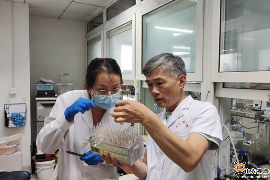 沈月毛教授指导学生开展实验,他带领的天然产物合成生物学与化学遗传学团队在大环内酰胺类天然产物的发现和合成生物学等方面连续取得重要研究成果。