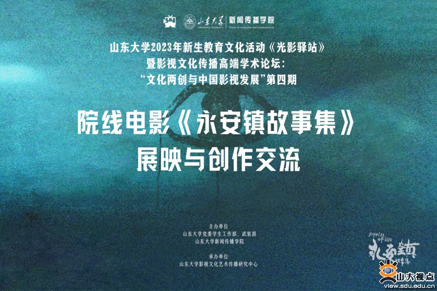 [本站讯]9月7日下午,由山东大学党委学生工作部、武装部和新闻传播学院联合主办,山东大学影视文化艺术传播研究中心承办的山东大学2023年新生教育文化活动《光影驿站》暨影视文化传播高端学术论坛:“文化两创与中国影视发展”第四期在中心校区举行,本期活动的主题为院线电影《永安镇故事集》展映与创作交流。
