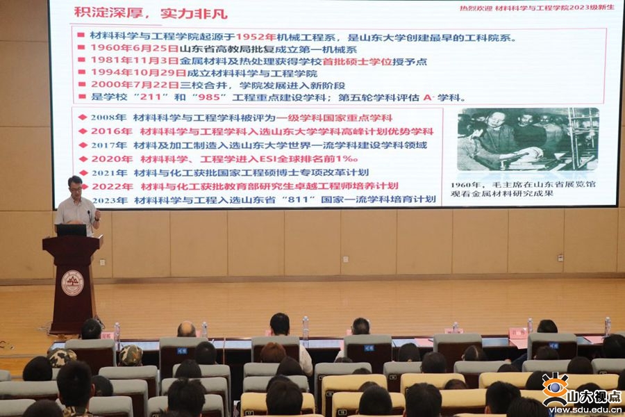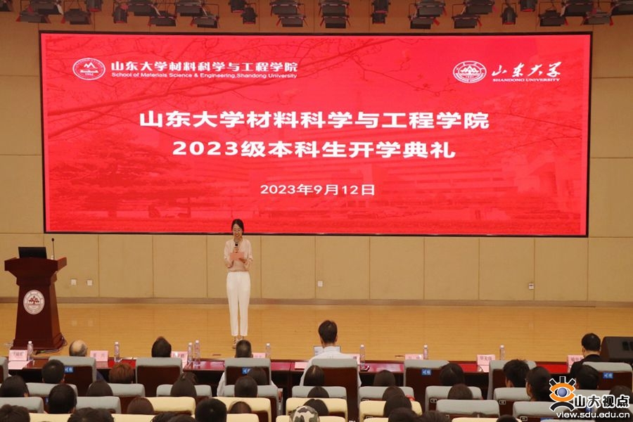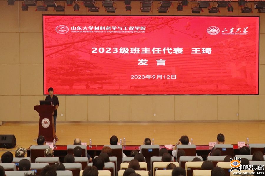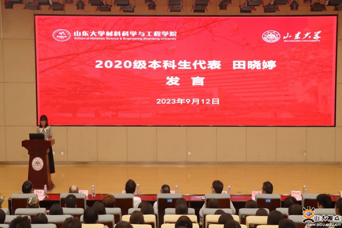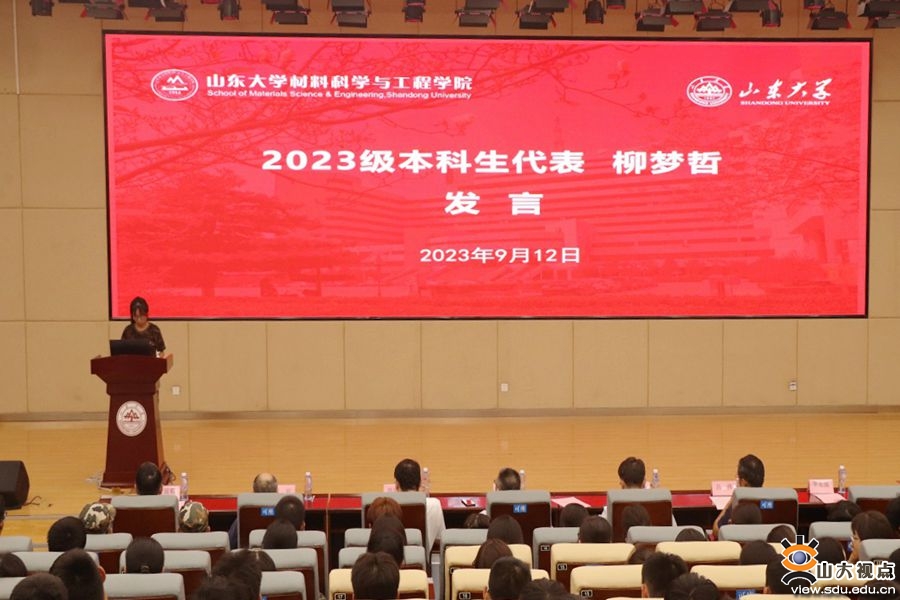 2023级本科生柳梦哲作为新生代表发言,她以“回首不忘来时路,起身直踏青云间”为题分享了作为新生来到山大材料学院的所见所感。柳梦哲表示,她深深地感受到了学院对新生的关怀厚爱和殷切期望,作为新一代材料人,将始终心怀“国之大者”,秉承“厚德明理,博学笃行”的院训,涵养品德修养、强化理论知识、培育创新意识、增强实践本领。