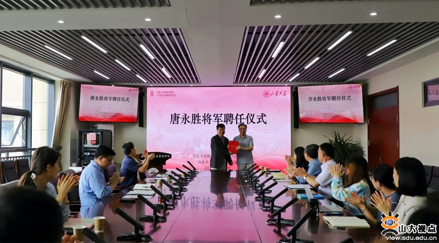 聘任仪式上,孔令栋为唐永胜教授颁发山东大学公共安全研究院学术顾问聘书,并对唐永胜教授的加盟表示欢迎和祝贺。唐永胜教授表示,将尽己所能参与山东大学国家安全学科建设。