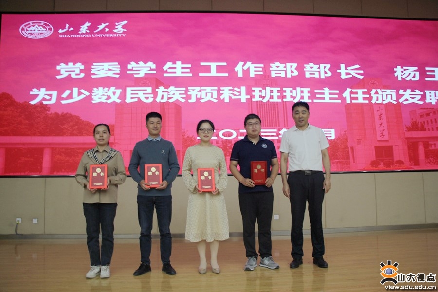 仪式上,王君松为2023级少数民族预科班授旗,党委学生工作部部长杨玉为2023级少数民族预科班班主任王程超、孙都成、张新雁、逄颖平四位老师颁发聘书。
