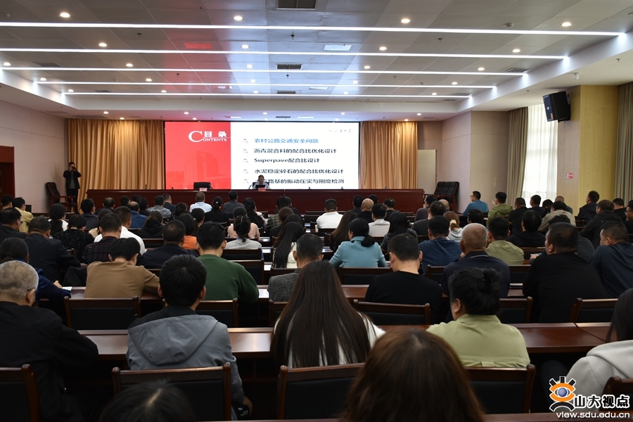 座谈会后,齐鲁交通学院教授刘树堂面向确山县交通系统200余位技术人员,作题为“农村沥青路面建设中的技术问题”的科技讲座,从农村公路交通安全、沥青混合料配合比优化设计、水泥稳定碎石配合比优化设计、路基振动压实与刚度检测等五个方面讲解了农村公路建设中的技术问题。