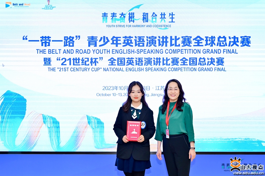 [本站讯]10月10日至13日,由中国日报社主办、21世纪英语教育传媒承办的第28届中国日报社“21世纪杯”全国英语演讲比赛全国半/总决赛在江苏太仓举行,山大外国语学院2022级梁实秋班谢天与同学在总决赛中脱颖而出,荣获一等奖,同时,指导教师高云荣获指导教师一等奖。