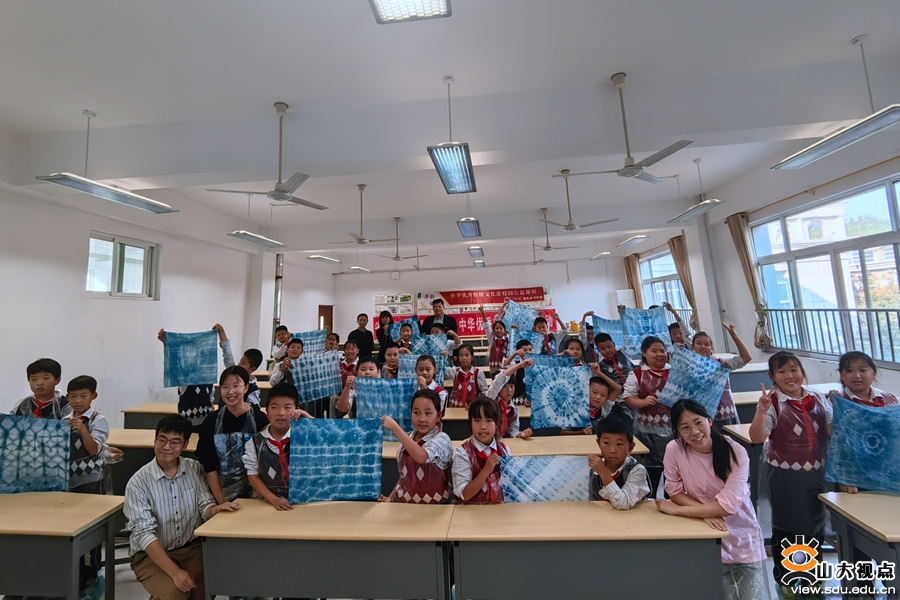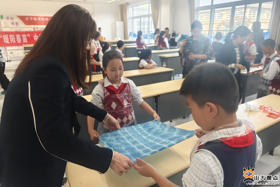[本站讯]10月24日,国际教育学院“华彩课堂”公益团队联袂山东省文化馆“暖阳春苗”项目走进济南锦屏学校,将中华优秀传统文化课程融入绿色环保校园主题教育,为该校学生带去“靛蓝染春秋——草木染”文化公益课程。