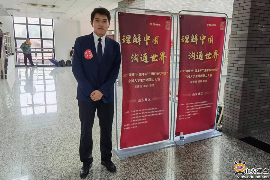 [本站讯]11月4日至5日,2023“外研社•国才杯‘理解当代中国’全国大学生外语能力大赛演讲赛山东省决赛”在山东大学洪家楼校区举行。外国语学院2022级日语二班学生刘澍阳在激烈的比拼中脱颖而出,取得第一名的好成绩,将代表山东省赛区参加“外研社•国才杯‘理解当代中国’全国大学生外语能力大赛”演讲赛项全国总决赛复赛。