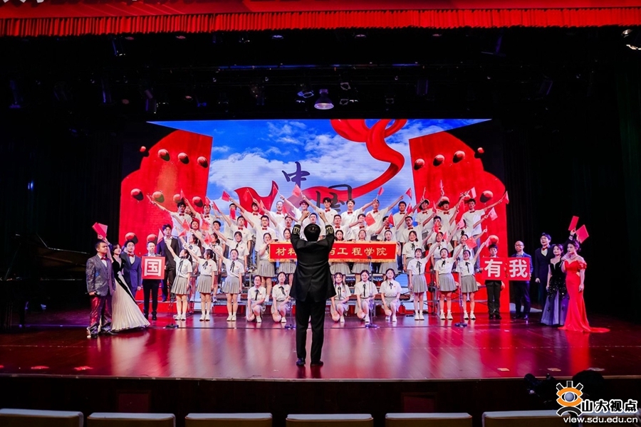 青春心向党,合唱献祖国。山东大学2023年研究生师生合唱比赛中,由3名研究生导师、2名研究生辅导员以及56名学生组成的材料学院合唱团以一曲《强国一代有我在》献礼祖国。在前期的精心准备与辛勤排练下,合唱分为男女两个声部进行表演,并加入了朗诵、手势等元素,歌声嘹亮、激情澎湃。正如学院师生在歌词中所唱“强国一代有我在,我要秀出我厉害”,全体研究生将继续发扬“厚德明理,博学笃行”的院训,砥砺前行再出发。