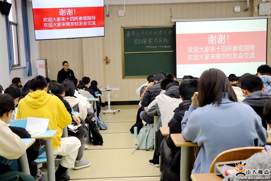 [本站讯]为加强校友与青年学生之间的情感联系,激励学子在优秀校友身上学习榜样精神,汲取奋进力量,11月26日上午,材料学院举行“材料的世界”系列专题讲座第五期。本次讲座由光学1981级校友、中电科十四所研高工、山东大学南京校友会会长赵玉洁和材料2010级校友、山东大学南京校友会秘书长栾骏鹏担任主讲,学院副院长管延锦主持。