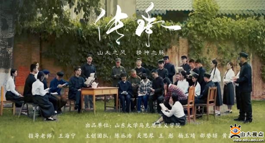 以“赛”促教,立足实践砥砺深耕。“我心中的思政课”大学生微电影展示活动聚焦理论知识,立足实践育人,以赛促教、以赛促培、以赛促思,鼓励全体山大学子兼顾思想理论深度与价值情怀温度,充分彰显新时代大学生的马克思主义理论素养和新时代精神风貌。在准备比赛的过程中,参赛选手结合自身专业特色,立足社会实践,用青年视角、青春语言以小见大,实现从“作为知识接受者参与学习”到“作为知识输出者自我提升”的转变。微电影作品《传承》,团队深入挖掘“华岗政治大课”中丰厚的历史经验,传承华岗校长的革命爱国精神与“大思政课”理念,通过青年话语阐述山大故事、传播山大声音,为讲好新时代“大思政课”提供有益的智慧启迪。微电影作品《选择》从青年人选择职业话题着手,通过具体的案例讲授“青年的价值判断与价值选择”,教育引导青年在面临人生的“岔路口”时,要坚定心中理想,无愧心中所选,到祖国和人民最需要的地方去。