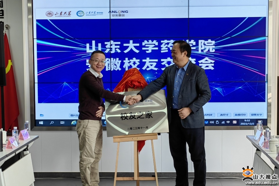 仪式上,山东大学药学院校友会会长、药品监管科学研究院院长王凤山,药学院校友会常务理事、山东大学医药行业校友会副会长、安徽安龙基因科技有限公司董事长韦玉军共同为“校友之家”揭牌。