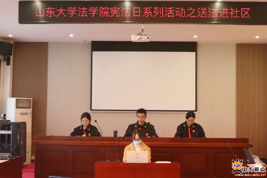 社区普法传递宪法力量。山东大学学生法律援助中心赴北宅社区开展普法活动,以模拟法庭情景剧的形式向社区居民进行普法宣传。情景剧由志愿者扮演审判长、书记员、诉讼代理人、原告、被告等角色,还原双方当事人在法庭上举证、质证、辩论的全过程,生动演绎生活中常见的法律问题以及案件诉讼的法律程序。活动以通俗易懂的方式代替单一的法治宣讲,通过“沉浸式”体验让群众认识到宪法法律与生活息息相关,加深对宪法和法律知识的理解,感受法律的神圣与庄严。