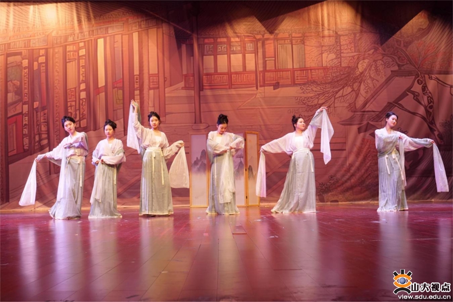 本次活动由校党委宣传部、文学院主办,文学院团委、山东大学学生季棠汉服社承办。歌舞展演化静止的馆藏文物为灵动的歌剧舞蹈,将中式美学与现代歌剧融会贯通,展现了中华民族独特的文化符号,激活观众内心深处的文化基因,进一步加深师生对华夏衣冠和礼乐文化的理解认知。