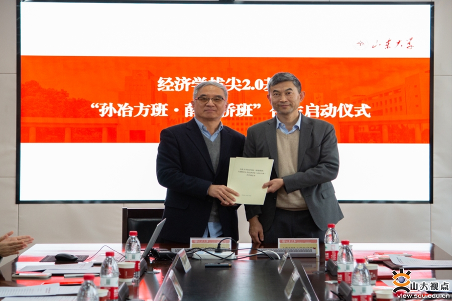 [本站讯]12月26日下午,经济学拔尖人才培养研讨会暨“薛暮桥班·孙冶方班”合作共建启动仪式在山东大学中心校区举行。上海财经大学教务处处长朱小能,经济学院院长周亚虹、党委书记林立国;山东大学本科生院副院长申树欣,经济学院院长林平、常务副院长石绍宾出席会议。会议由经济学院党委书记董春杰主持。