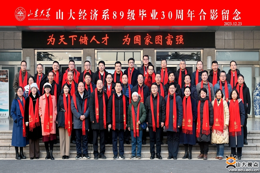 [本站讯]12月23日,经济学院89级校友毕业三十周年返校纪念活动在中心校区举行,来自全国各地的校友荣归母校,共叙情谊,共忆美好青春时光。任课教师代表、山东大学原校长樊丽明,经济学院党委书记董春杰,教师代表及89级财税专业40余名校友参加活动。