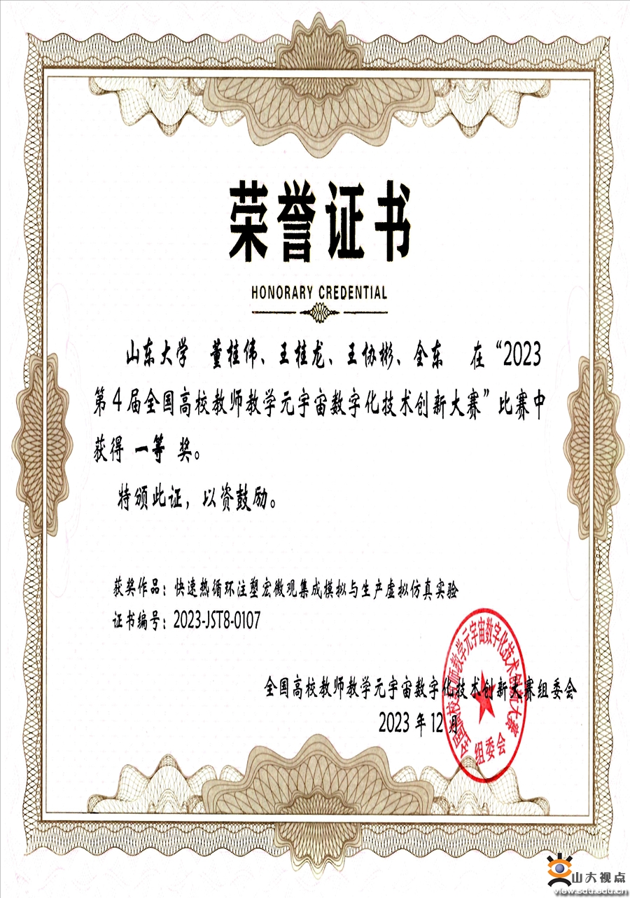 [本站讯]近日,2023年第四届全国高校教师教学元宇宙数字化技术创新大赛全国总决赛举行,材料学院教师董桂伟、王桂龙、王协彬、全东组成的“高光注塑成型仿真团队”参赛项目《快速热循环注塑宏微观集成模拟与生产仿真实验》入围总决赛,并获得一等奖。