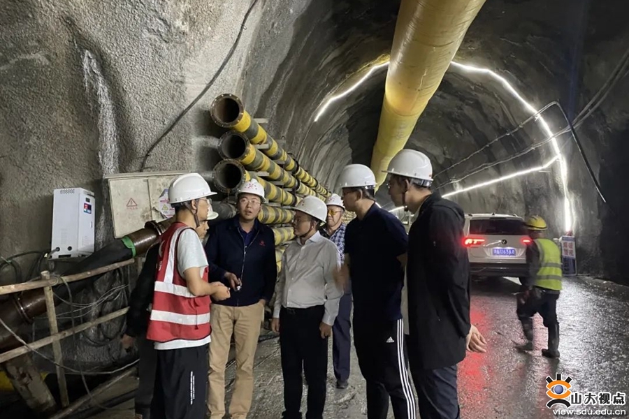 团队始终秉承和发扬山东大学岩土工程中心“理论密切联系实际,深入工程一线”的理念,坚持面向国家重大工程防灾需求,开展“顶天立地”的科学研究和技术咨询服务。团队将临时党支部和现场教学实践与科研育人基地建在新疆某引水工程等国家重大工程一线,长期到工程现场开展调研和实践,实施“沉浸式”和“融入式”工程实战教育,有效发挥工程实践的“磨刀石”作用;支部师生在实战中,原汁原味学,身临其境悟,扎扎实实干,真正做到“发现真问题,解决真问题,真解决问题”,塑造大工程观和工程系统思维,夯实师生服务重大工程的能力。许振浩经常和学生们讲:“工程现场的实践锻炼是多方面的,一方面,用自己的专业所学解决工程实践中的问题,会让人特别有成就感与获得感;另一方面,科学研究、地质预报、现场管理、报告撰写、沟通协调等也是对综合能力的一种锻炼与提高。”2023年,团队老师带领研究生前往新疆、西藏等工程现场,开展工程建设一线教学累计300余天。