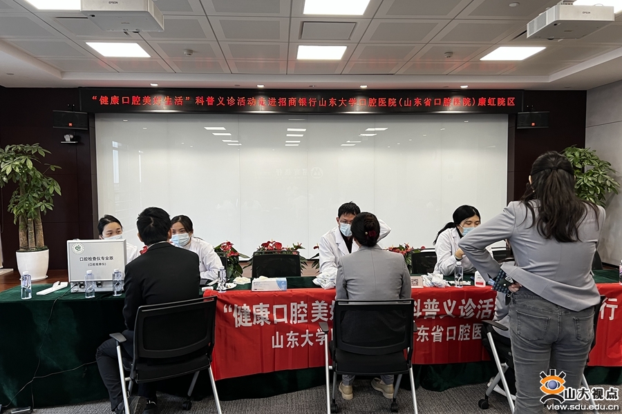 活动现场,学院(医院)康虹院区杨彬杰、惠婷、王英姿三位医师为前来咨询的职工进行了详细的口腔检查,并结合大家的年龄、口腔健康状况给出了针对性的治疗意见。护士长王迎迎及护士李双双通过义诊观察仪对部分职工进行了口内健康情况筛查,现场科普了刷牙的正确方法及如何正确使用牙线等口腔保健知识。“感谢山大口腔为我们提供的义诊服务,让我们对自己的口腔健康状况有了进一步的了解,也对口腔保健的重要性有了新的认识”,当天的义诊活动得到了招行职工的一致好评。