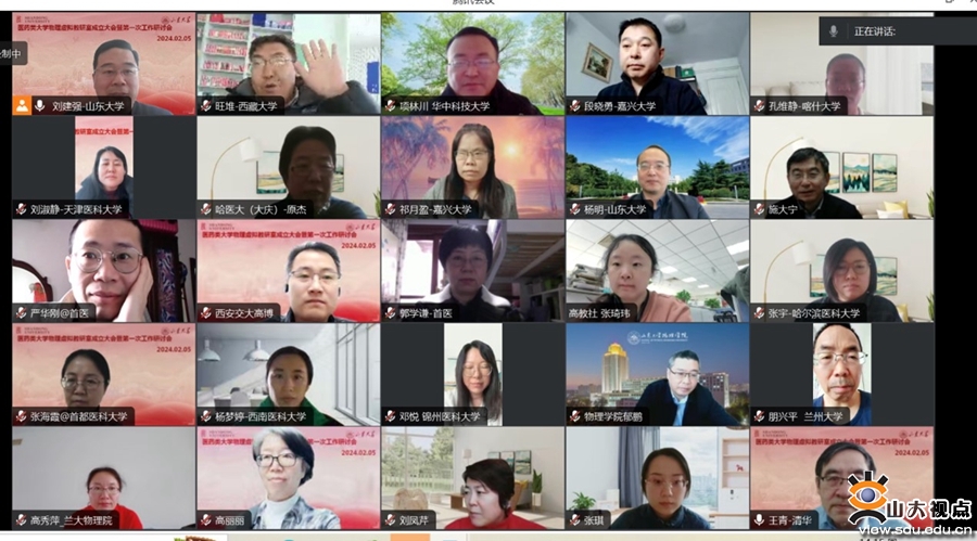 [本站讯]2月5日,由山东大学物理学院承办的医药类大学物理虚拟教研室成立大会暨第一次工作研讨会在线召开,山东大学牵头国内50余所高校共同成立医药类大学物理虚拟教研室。