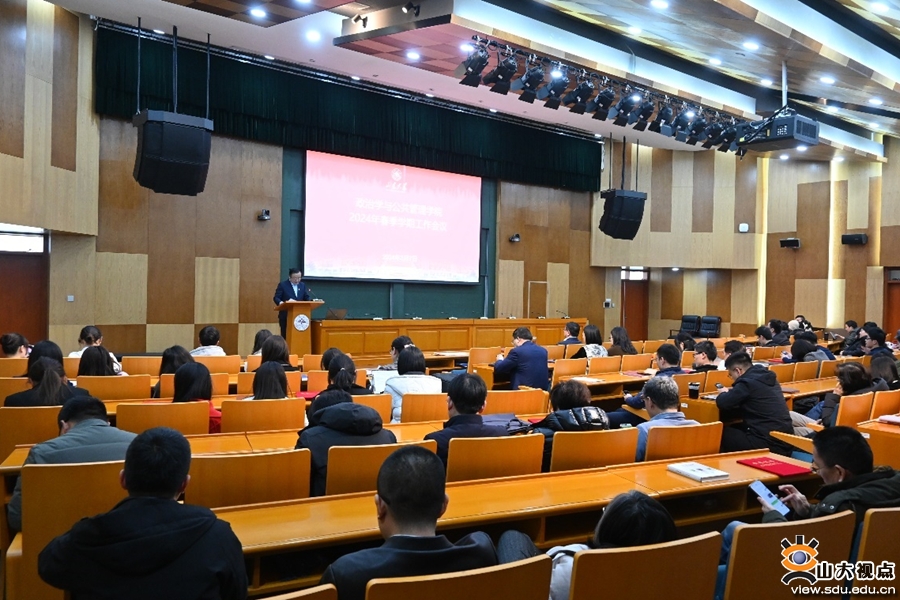 在随后召开的新学期工作会议上,李海燕传达了中共山东大学第十四届委员会第十五次全体会议和学校2024年春季学期工作会议的主要精神。会议指出,要以文育人,加强正面宣传,全方位、多维度讲好山大故事、学院故事,展现学院良好精神风貌。会议强调,要增强攻坚克难的精神,增强改革韧劲,持续激发内生动力和创新活力,不断开创学院高质量发展新局面,奋力回答好“强国建设、政管何为”的时代课题。
