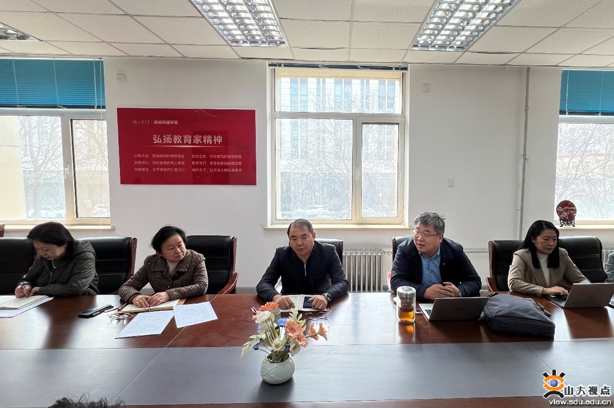 [本站讯]为贯彻落实学校“聚力构建大宣传格局”工作要求,全面提升学院宣传工作质效,助力讲好“山大故事”,3月11日上午,新闻传播学院召开专题会议,凝心聚力谋划推进宣传工作。学院党委书记孙宜山、副院长倪万出席会议并讲话,会议由学院党委副书记王丽君主持。
