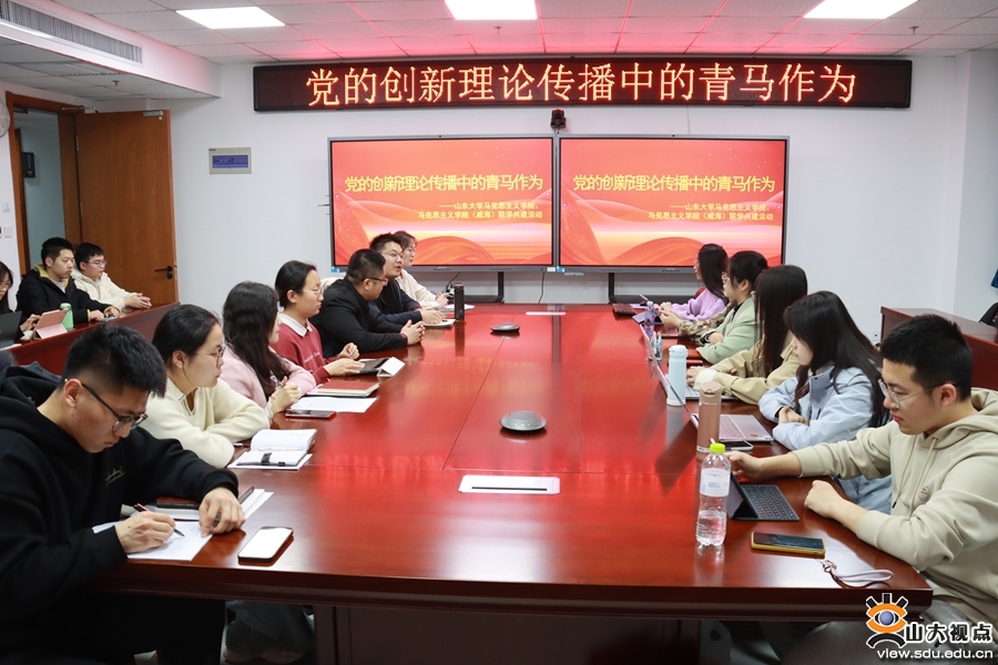 [本站讯]为持续深化巩固学习贯彻习近平新时代中国特色社会主义思想主题教育成果,加强济南和威海两地马克思主义学院的深入交流与合作共建,3月23日,马克思主义学院、马克思主义学院(威海)在威海校区举办“党的创新理论传播中的青马作为”联学共建活动。马克思主义学院助理研究员张政、马克思主义学院(威海)辅导员杨在政及两地学生骨干代表参加。活动由2022级硕士研究生初昕蔚主持。