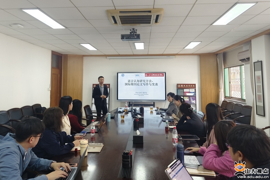 [本站讯]3月29日上午,国际教育学院举办“海岱新声”青年教师科研规划与专业成长沙龙暨第六十七期教学学术工作坊,复旦大学现代语言学研究院青年副研究员高飞受邀以“语言认知研究方法与SCI/SSCI期刊论文发表”为主题进行分享。本次沙龙由副院长矫雅楠主持,学院部分青年教师与博士研究生参与活动。