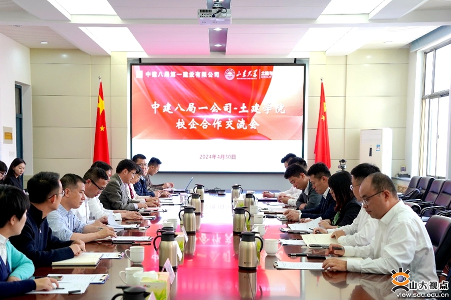 [本站讯]4月30日,山东大学土建与水利学院与中建八局第一建设有限公司在千佛山校区举行校企合作交流会。土建学院党委书记刘斌,院长张庆松;中建八局一公司党委书记、董事长齐朋,人力资源总监马姗姗,济南公司党委书记谢新坡;土建学院班子成员、师生代表及中建八局一公司相关部门代表参会。