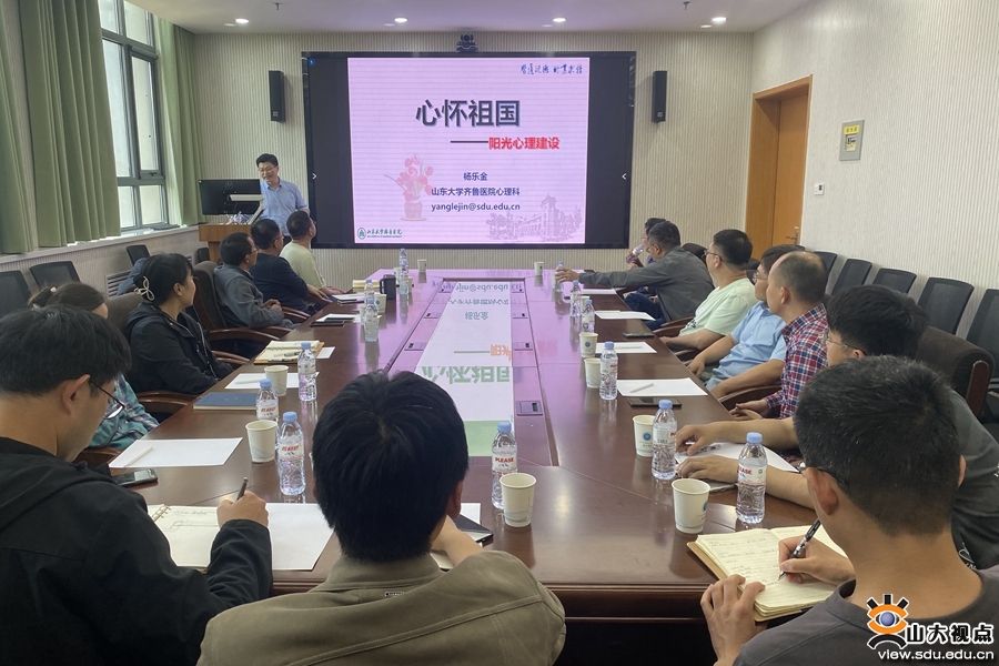 [本站讯]5月7日,高等医学研究院邀请山东大学齐鲁医院心理科杨乐金教授作题为“心怀祖国,阳光心理建设”的专题讲座。高等医学研究院全体导师、辅导员聆听本次讲座。