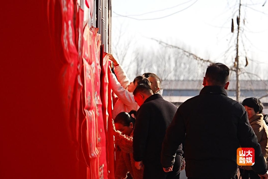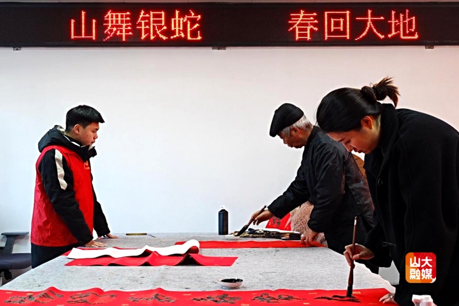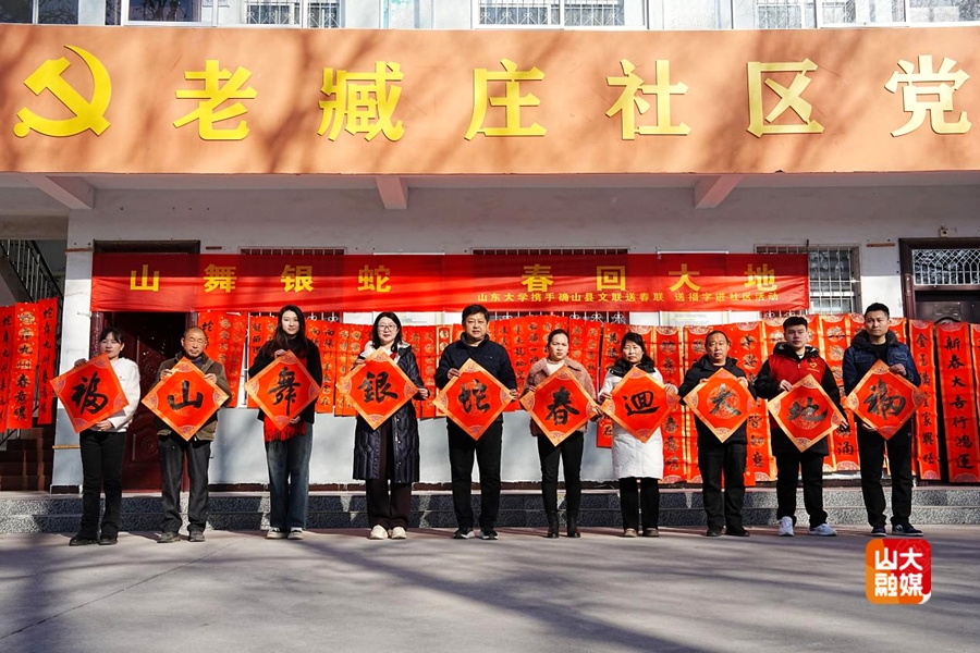 [本站讯]在2025年蛇年即将到来之际,山东大学携手确山县文联、书法家协会在三里河街道老臧庄社区举办“山舞银蛇、春回大地”送春联送福字进社区活动。