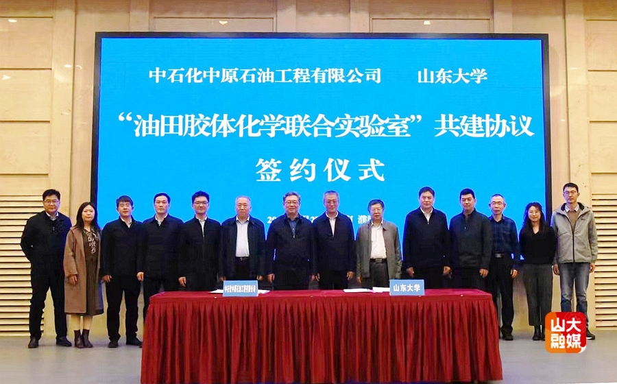 [本站讯]2月27日,中石化中原石油工程有限公司(简称“中原石油”)与山东大学共建油田胶体化学联合实验室合作协议签字仪式在河南濮阳举行,山东大学化学与化工学院院长王琪珑与中原石油党委书记张百灵出席活动。化学与化工学院党委书记侯兴合与中原石油钻井院党委书记孙宝才签署联合实验室合作协议书。