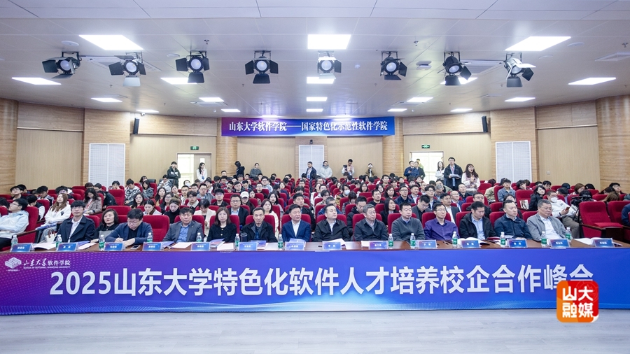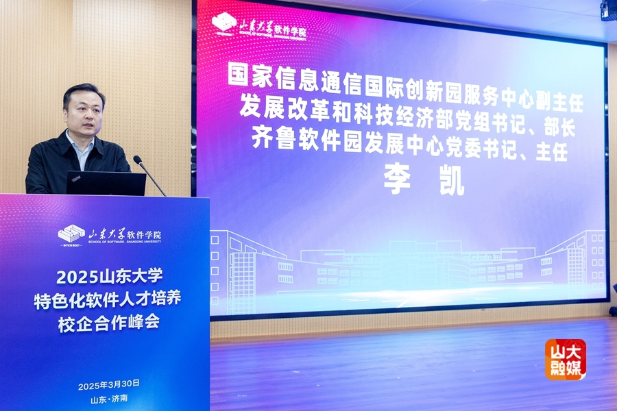 [本站讯]3月30日,2025山东大学特色化软件人才培养校企合作峰会在软件园校区举行。副校长朱德建;国家信息通信国际创新园服务中心副主任,济南高新区发展改革和科技经济部党组书记、部长,齐鲁软件园发展中心党委书记、主任李凯出席活动。