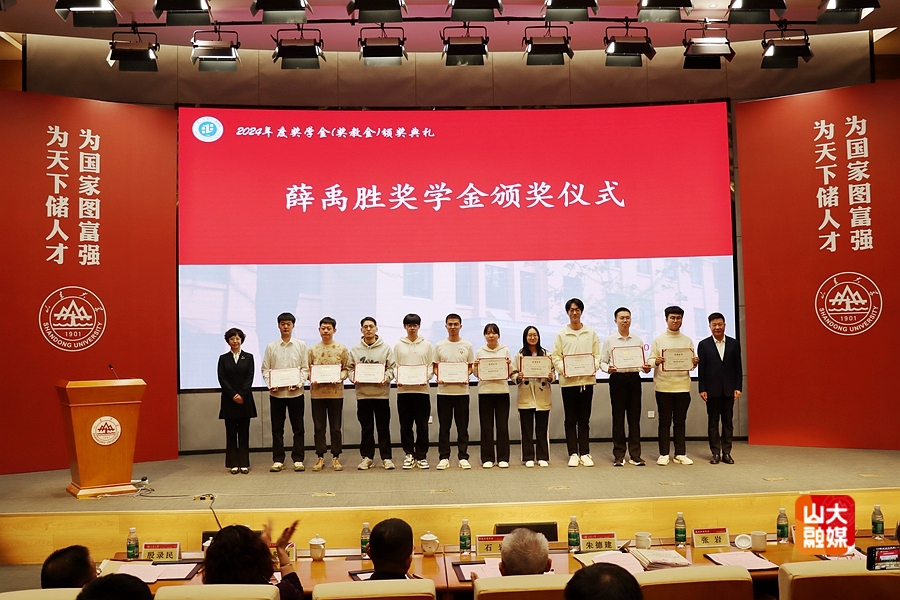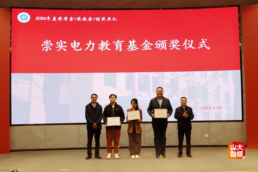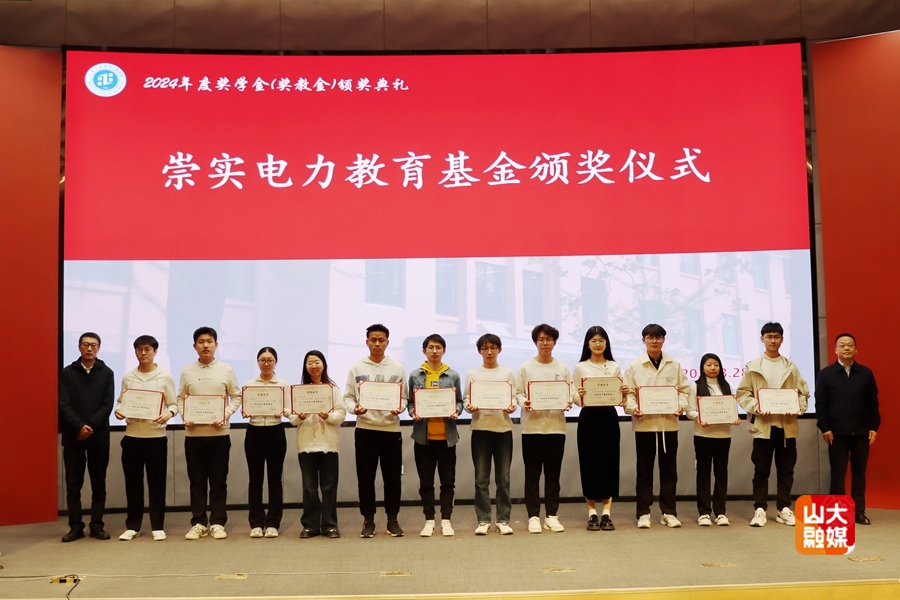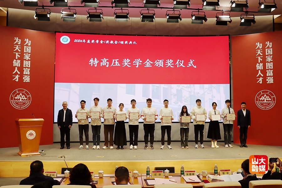 电气工程学院党委副书记王海华宣读了《关于表彰2024年度院评奖学金、奖教金获得者的决定》。朱德建与各捐助方代表共同为校评奖学金获奖同学颁奖。薛禹胜奖学金捐助方代表、国网电科院教培中心副主任张岩在致辞中勉励广大学子应发扬“一辈子办成一件事”的精神,为电力事业贡献力量。特高压奖学金捐助单位代表、国网山东省电力公司副总经理石岩表示,双方将共同为国家能源电力发展作出新的重大贡献。科汇奖学金捐助单位代表、山东科汇电力自动化股份有限公司党委书记王相安表示,希望广大同学积极锻炼综合能力,科汇公司将始终为优秀人才提供广阔的发展平台。