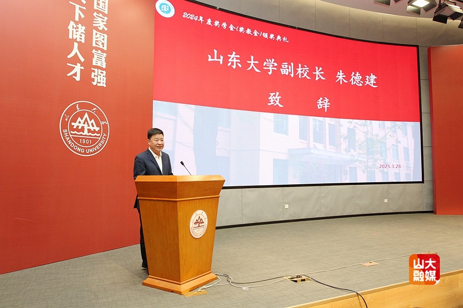 [本站讯]3月28日,山东大学电气工程学院奖学金(奖教金)颁奖典礼在千佛山校区举行。副校长朱德建出席典礼并致辞。