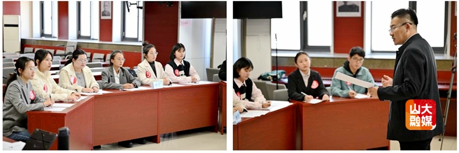 杏坛薪火一脉相承,三尺讲台实练砺能。教师讲课培训系列讲座邀请山大附中刘心宇老师和许欣楠老师主讲,延续学院“传帮带”优良传统,帮助学生提升讲课实战能力。她们系统讲解备课框架构建方法,强调“目标导向、提前规划”的教学理念;聚焦课堂设计艺术,建议各位同学设计课程“出彩点”,提出“情境创设、图表辅助”的创新思路,指导学员打造课程亮点。在实战演练环节,参训学员围绕“明朝对外关系”和“隋唐中外文化交流”主题进行限时备课与模拟授课。评委从教学设计、课堂呈现、师生互动等维度进行专业点评,助力学员提升教学综合素养。