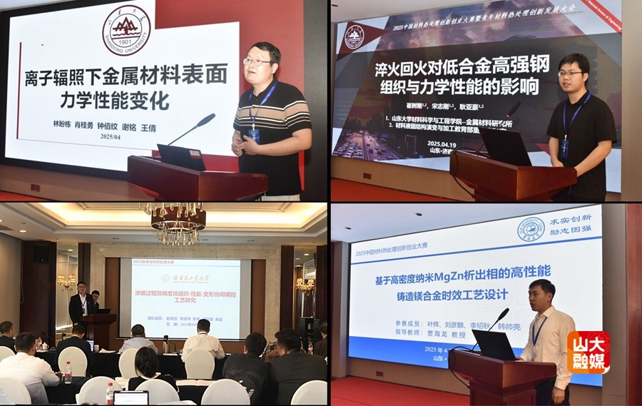 [本站讯]4月19日至21日,由中国机械工程学会热处理分会主办,山东大学材料科学与工程学院联合协办的“2025中国材料热处理创新创业大赛暨青年材料热处理创新发展大会”在山东大学举行。山东大学常务副校长吴臻、中国机械工程学会热处理分会理事长徐跃明出席大会并致辞。中国机械工程学会热处理分会常务理事、山东大学材料学院党委书记吕宇鹏主持活动。