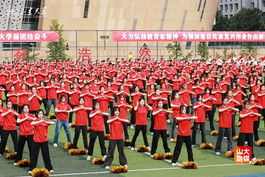 闭幕式上,900余名健美操专项课的学子共同演绎“刚柔并舞·韵起华章”大型团体操。来自五个校区的学生历经近一年的挥汗打磨,在四位健美操教师指导下,将街舞的酷飒、花球啦啦操的活力与八段锦的刚柔完美交融。