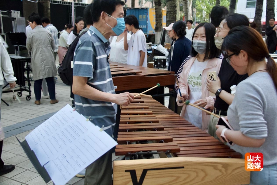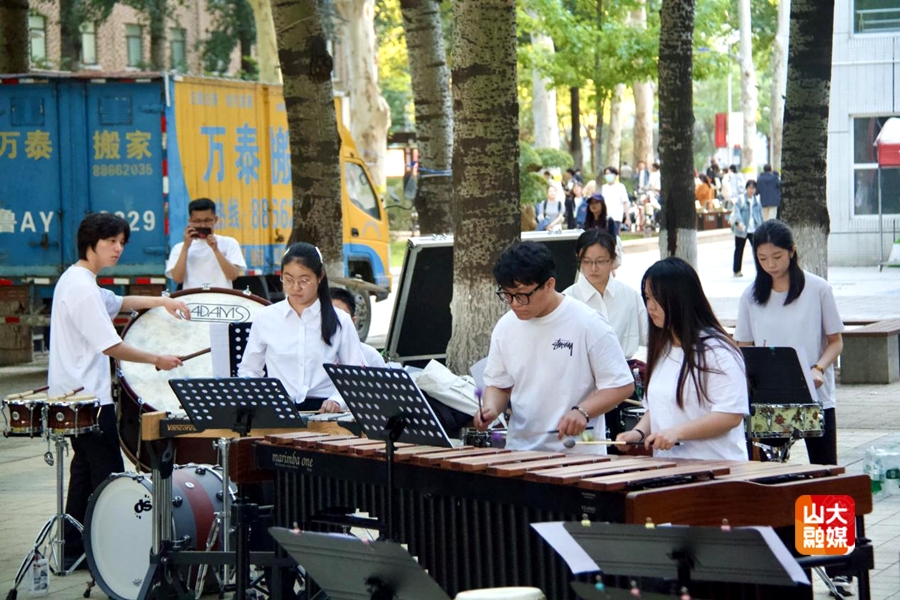 [本站讯]4月28日,艺术学院承办的以“春鼓·融——东西韵律的春日对话”为主题的露天音乐会在中心校区举办。山东大学打击乐团参加演出的12名团员分别来自艺术学院、考古学院、数学学院、新闻传播学院和外国语学院。