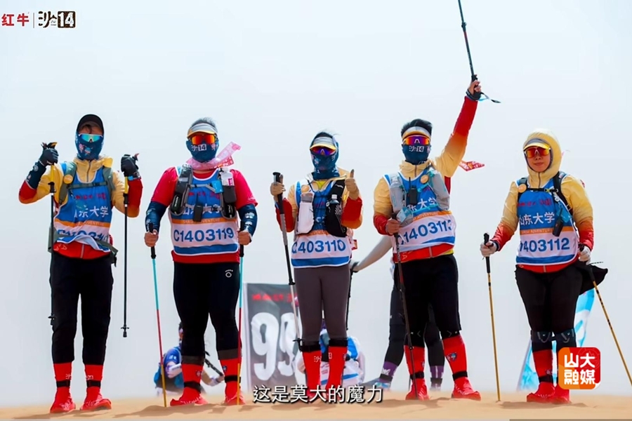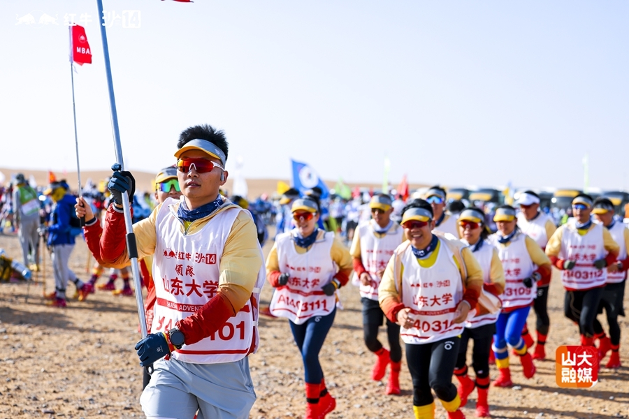 本届沙赛期间,首日遇大风天气,次日烈日灼地,决战日风雨交加,被称为“最虐沙赛”。征战沙漠,不仅是简单的徒步,更是一场毅力的挑战,一次对团队极限的终极考验。山东大学MBA泰山队63名勇者团结一心,奋力拼搏,狂风见证三天的艰辛,烈日铭记三天的汗水,风雨交加让大家携手破局。“沙赛一次,沙友一生”不仅是口号,更是全体师生用伤痛、呐喊、欢笑、泪水与信任写下的誓言。腾格里终将褪去风沙,但这段热血征程将永存心间。
